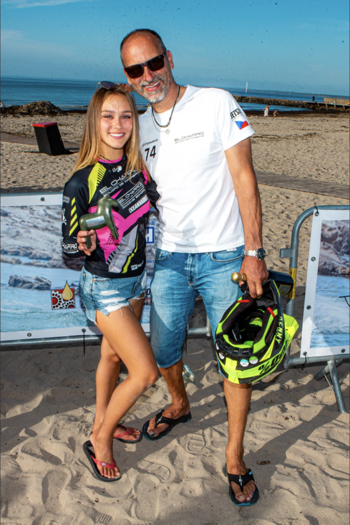 My name is Eli Charousova and I started with JetSurfing in 2017, when I instantly fell in love with the sport. Since the very first turns, I knew I wanted to become a racer! In 2018 on Christmas Eve my dream came true, when my father bought me my very first JetSurf. In the summer of 2019, I started racing. You can imagine how my first race went! I was only happy that I didn’t end up last. Two years later, I have succeeded the title of Vice Champion of Europe! I often say that I have a racer blood in my veins because of my father, who was a car racer back in his younger days and took me to all his races when I was a little girl. I was raised by speed, sounds of revving engines and adrenaline. From then on, I didnt want to play with dolls anymore, but joystick cars, buggies and airsoft guns. If that little girl could see me today, a racer in motorsport, I think she would be proud!